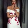 Trumpa proginė suknelė pelenų rožės spalvos. Viršutinė dalis iš smulkaus gipiūro su juodomis aksominėmis sagutėmis. Sijonas iš šilkinio šifono. Dirželį galima įsigyti atskirai.