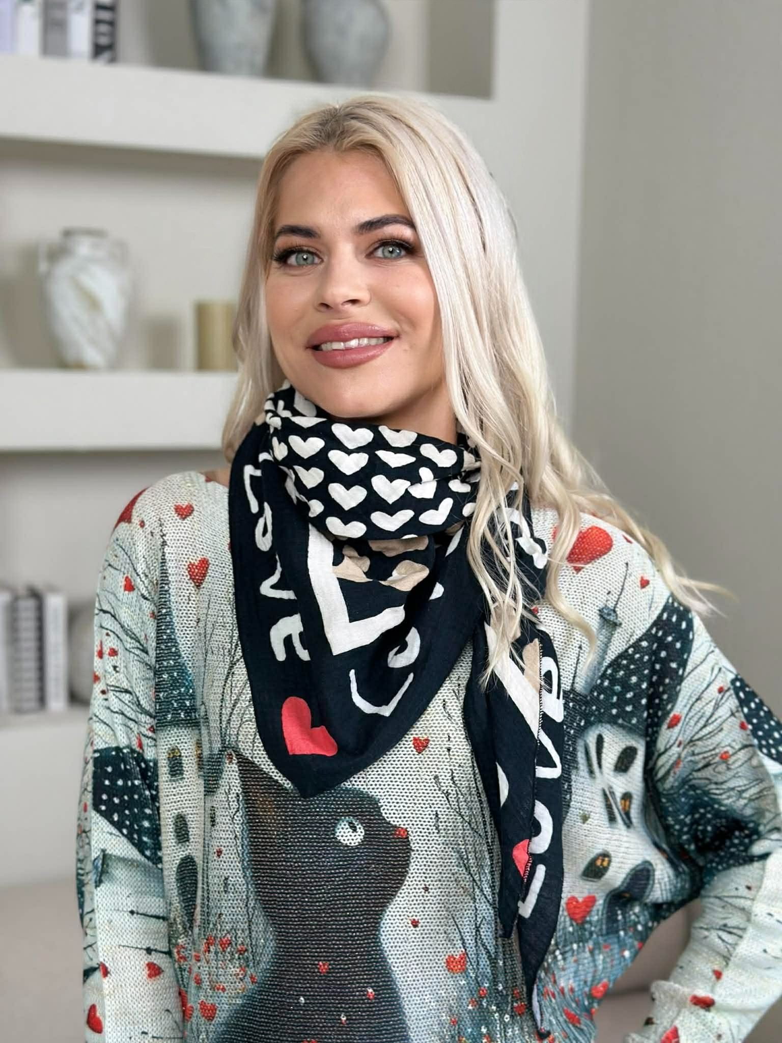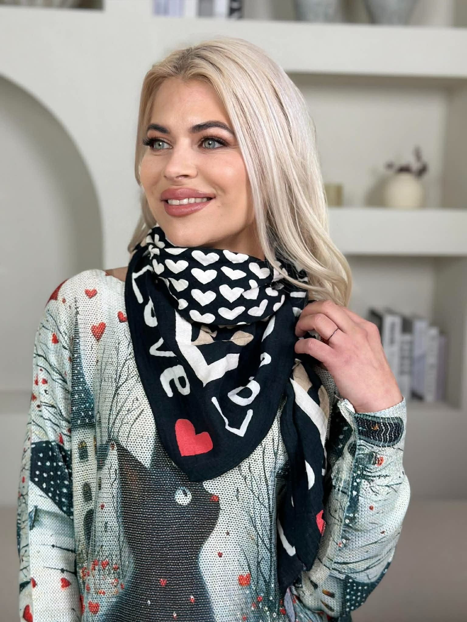Šalikas „Love”, juoda spalva
