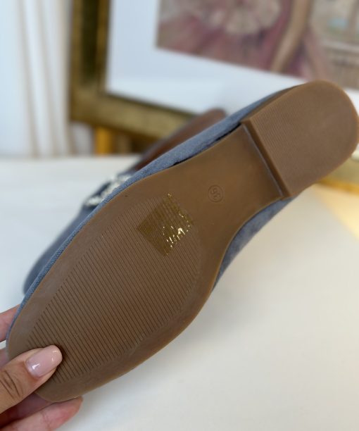 Šviesios džinsinės spalvos bateliai su papuošimu. Itin patogūs ir stilingi, puikiai derinami su suknelėmis ir kelnėmis.