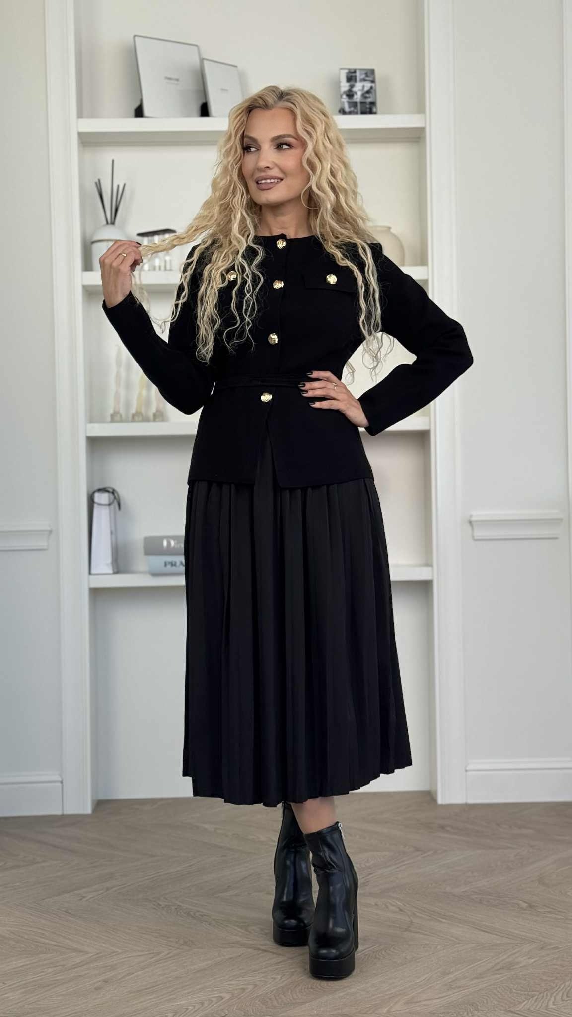 Kostiumėlį sudaro dvi dalys – apatinė suknelė, kurią puikiai priderinsite ir kituose įvaizdiuose bei megztukas.