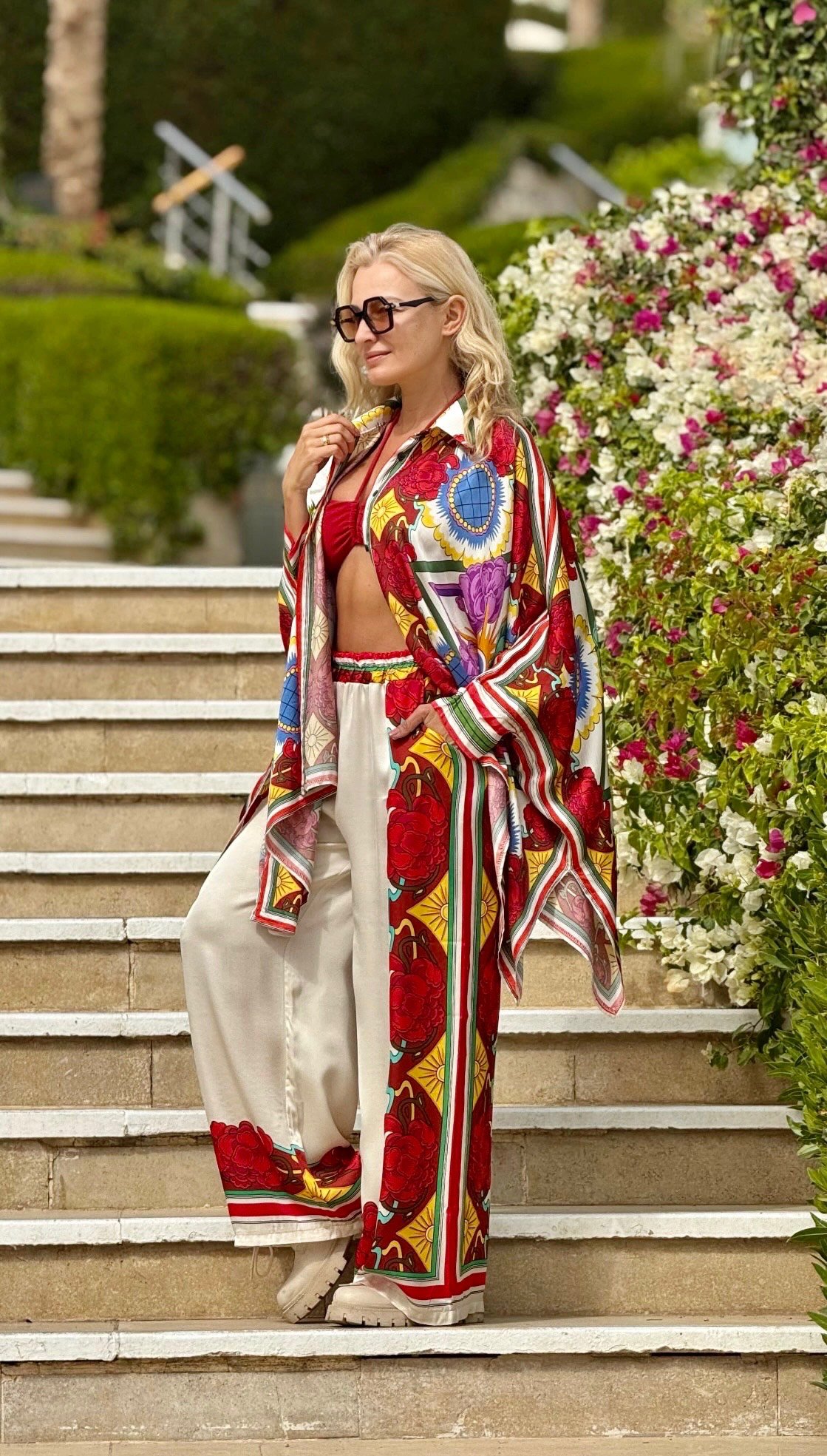 Kostiumėlis „Ornamentai”, latte/raudona spalva