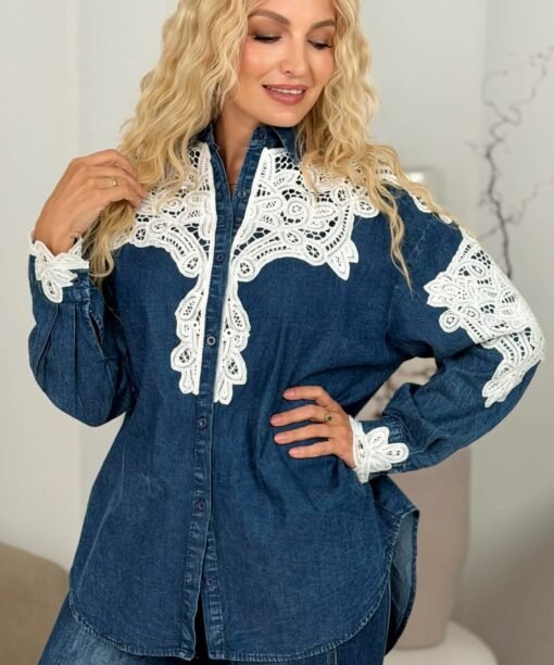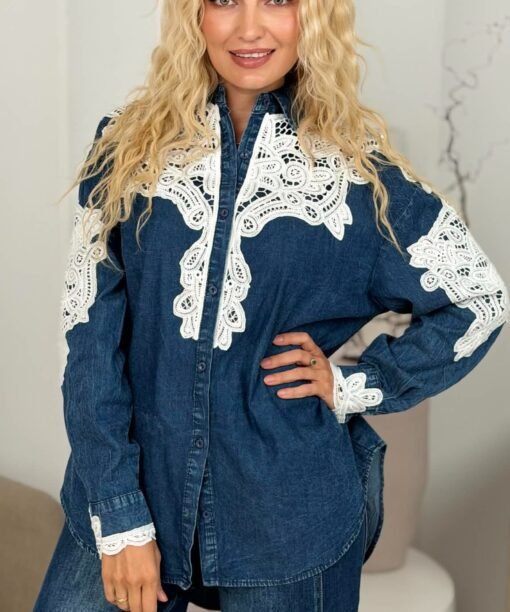 Marškiniai „Nėrinių aplikacijos”, tamsi džinso spalva