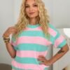 Megztinis "Dryžuotas", trumpos rankovės, geltona/rožinė spalva