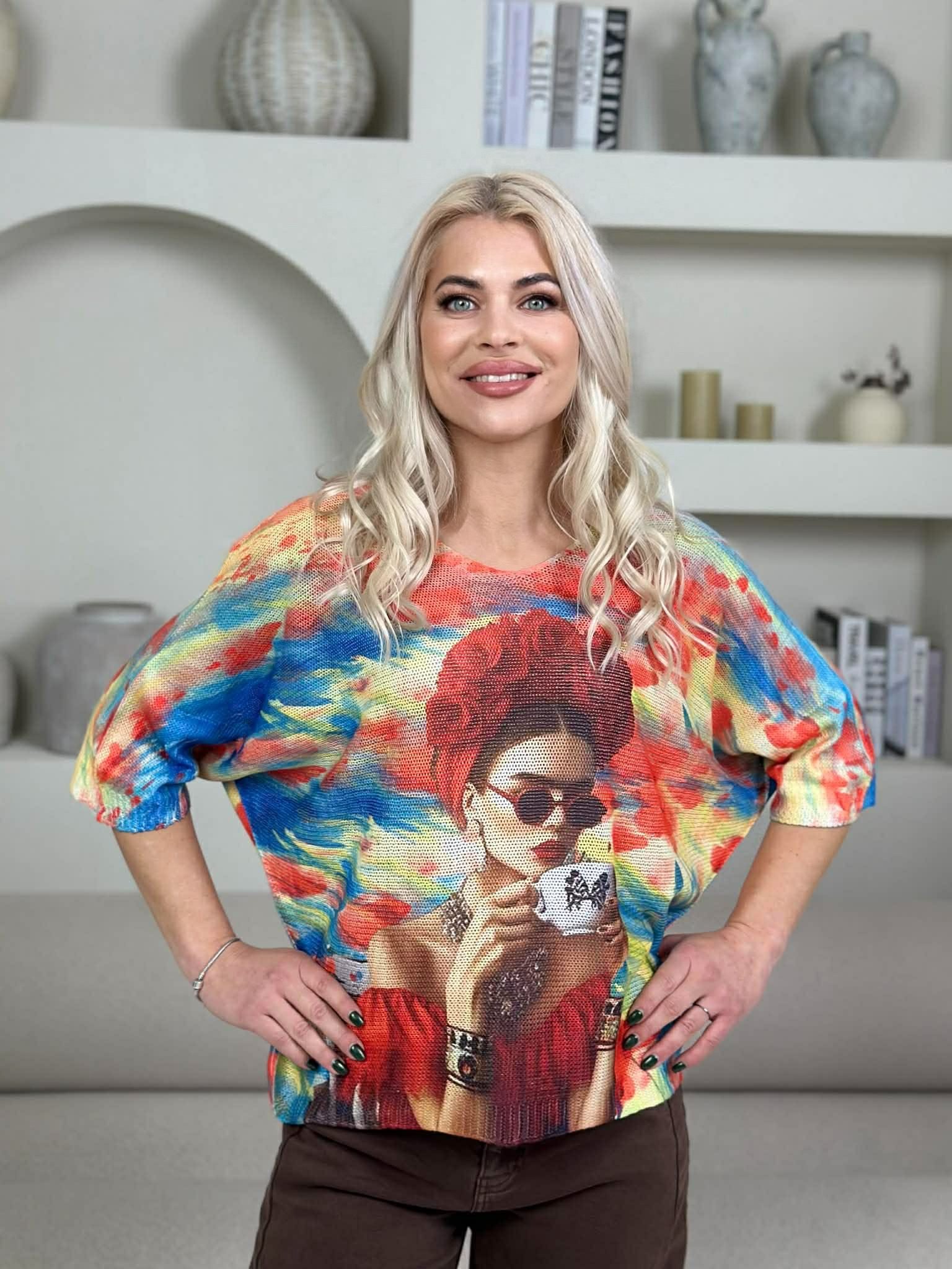 Šis megztukas pasižymi originaliu, menišku dizainu ir patogiu siluetu. Lengvas, laisvo kritimo modelis suteikia judėjimo laisvę ir elegantišką, neįpareigojantį įvaizdį. Megztukas turi platų, šiek tiek nuleistų pečių kirpimą bei apvalią iškirptę, pabrėžiančią kaklo liniją. Puikiai dera tiek su klasikinėmis kelnėmis, tiek su džinsais ar sijonu – idealiai tinka kasdienai ar laisvalaikiui, kai norisi išskirtinumo ir komforto viename.