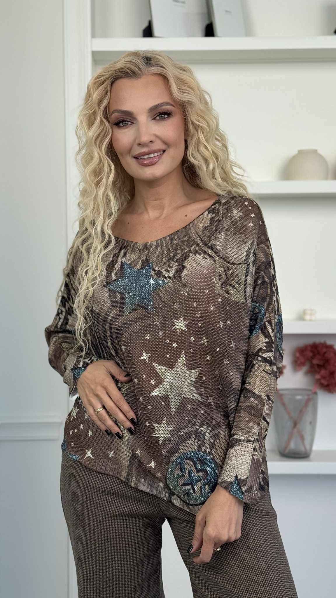 Šis megztukas pasižymi originaliu, menišku dizainu ir patogiu siluetu. Lengvas, laisvo kritimo modelis suteikia judėjimo laisvę ir elegantišką, neįpareigojantį įvaizdį. Megztukas turi platų, šiek tiek nuleistų pečių kirpimą bei apvalią iškirptę, pabrėžiančią kaklo liniją. Puikiai dera tiek su klasikinėmis kelnėmis, tiek su džinsais ar sijonu – idealiai tinka kasdienai ar laisvalaikiui, kai norisi išskirtinumo ir komforto viename.