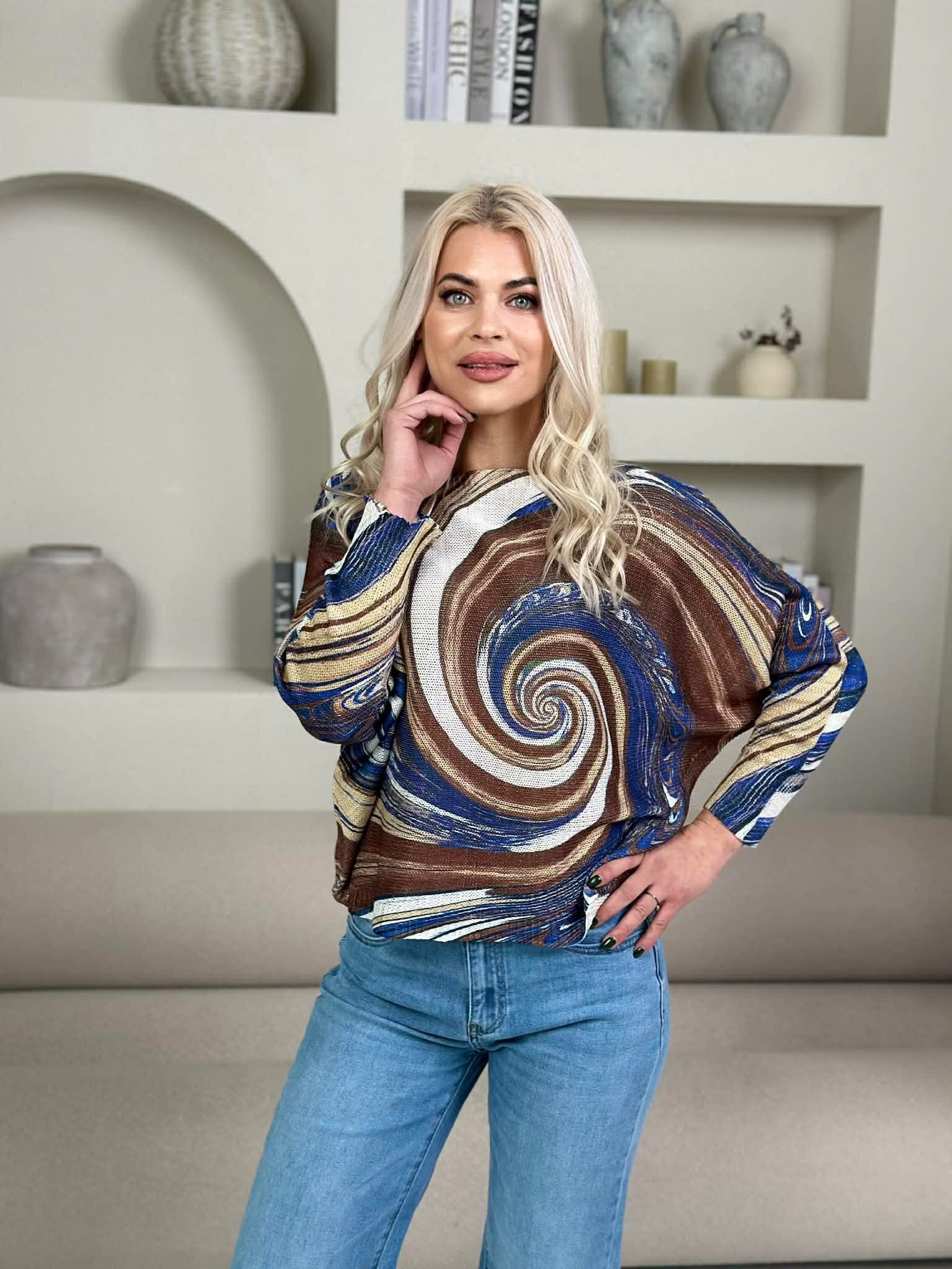 Šis megztukas pasižymi originaliu, menišku dizainu ir patogiu siluetu. Lengvas, laisvo kritimo modelis suteikia judėjimo laisvę ir elegantišką, neįpareigojantį įvaizdį. Megztukas turi platų, šiek tiek nuleistų pečių kirpimą bei apvalią iškirptę, pabrėžiančią kaklo liniją. Puikiai dera tiek su klasikinėmis kelnėmis, tiek su džinsais ar sijonu – idealiai tinka kasdienai ar laisvalaikiui, kai norisi išskirtinumo ir komforto viename.