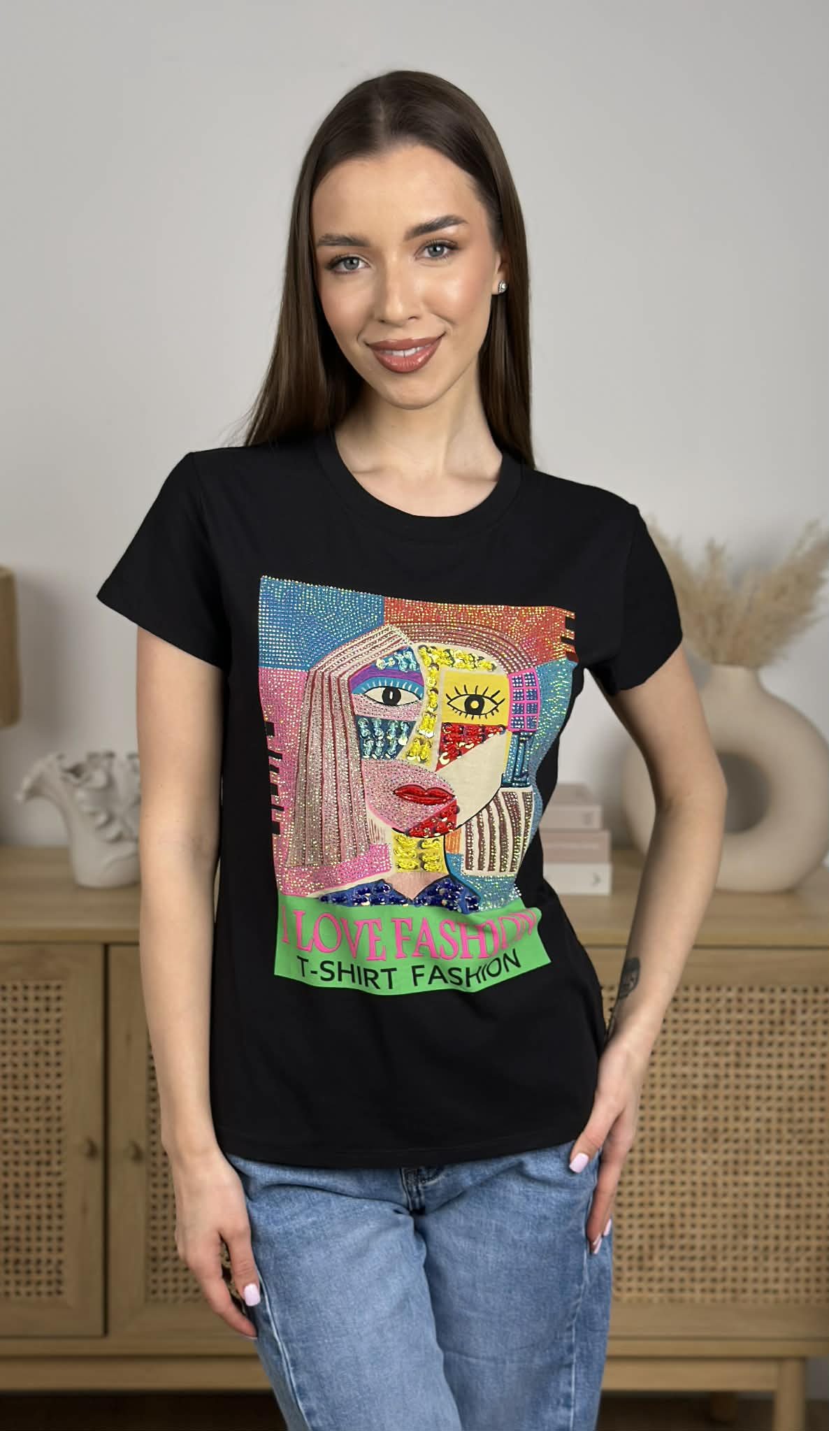 Marškinėliai „I Love fashion”, juoda spalva