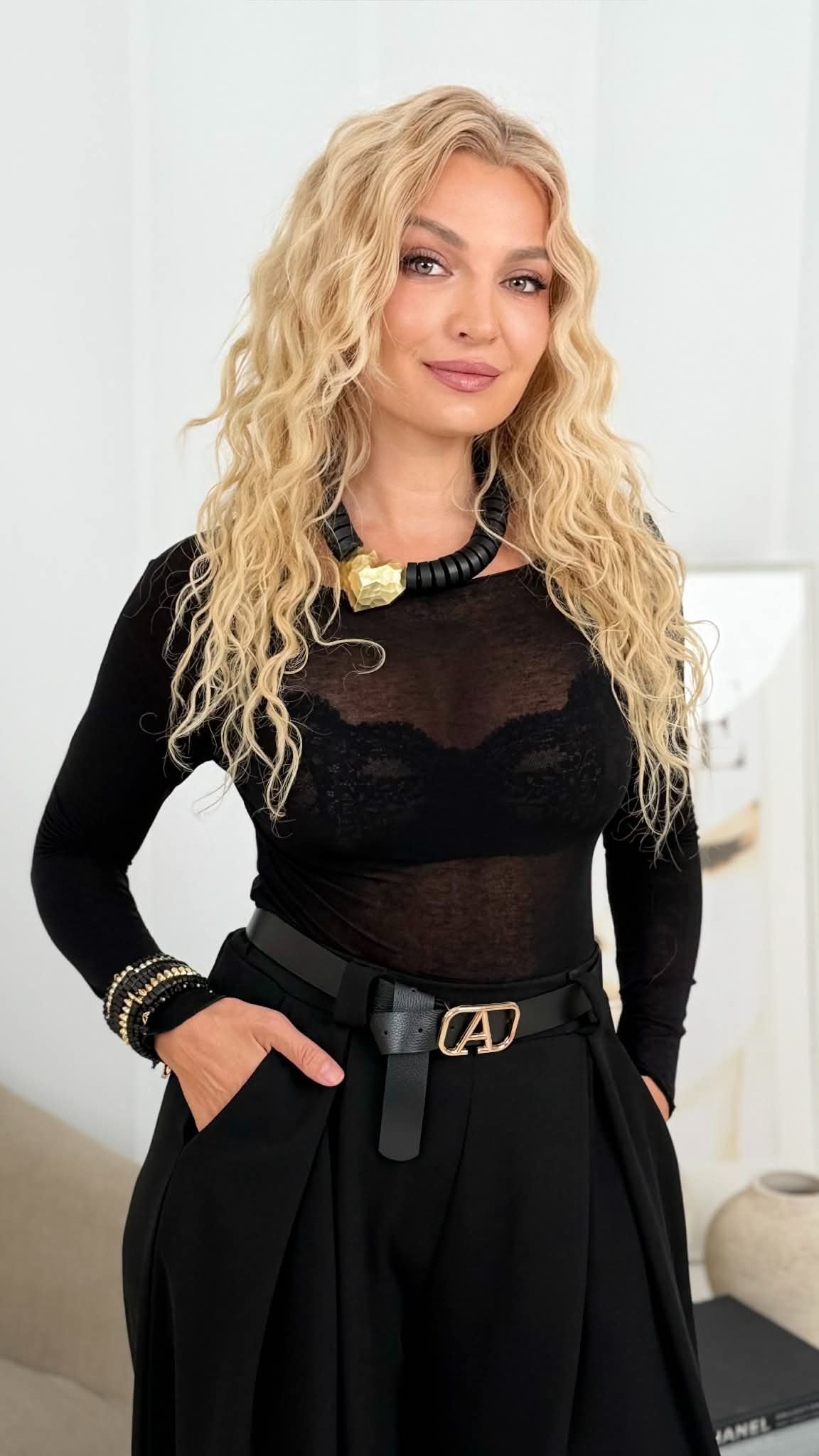 Klasikinio kirpimo palaidinė ilgomis rankovėmis – nepakeičiamas drabužis tiek kasdienai, tiek elegantiškesnėms progoms. Pagaminta iš švelnaus, tampraus audinio, ji maloniai priglunda prie kūno ir suteikia komforto visą dieną. Minimalistinis dizainas leidžia lengvai derinti prie įvairių stilių – nuo klasikinių kelnių iki sijonų.