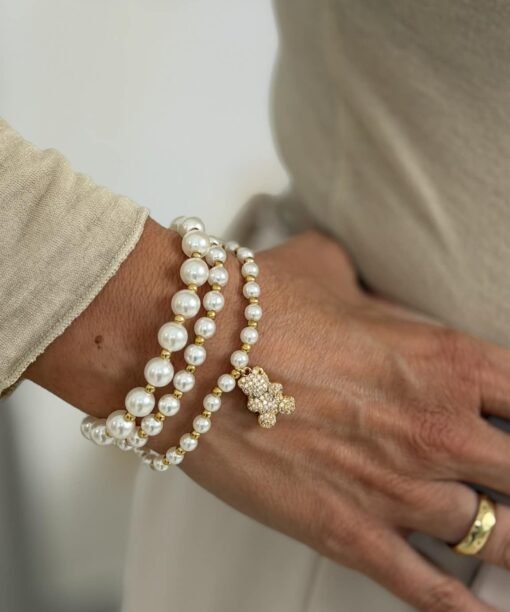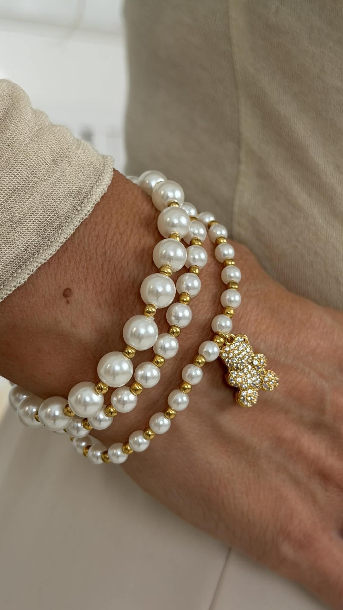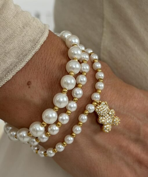 Apyrankių rinkinys „Meškinas, perliukai”, aukso spalva
