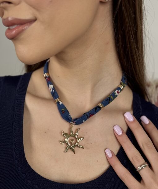 Kaklo papuošalas „Gėlėta juostelė ir saulė”, mėlyna spalva