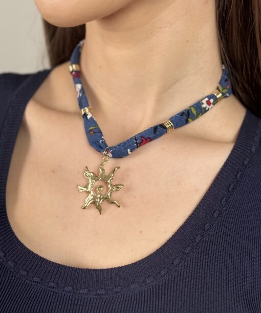 Kaklo papuošalas „Gėlėta juostelė ir saulė”, mėlyna spalva