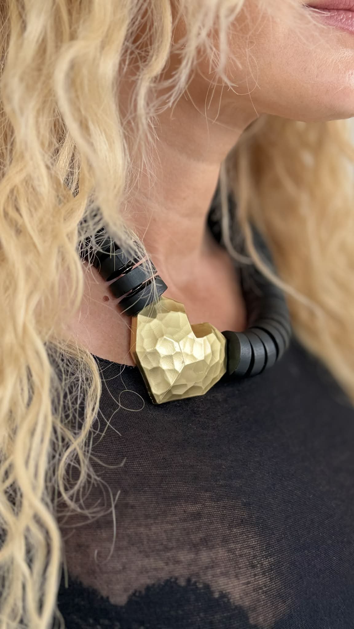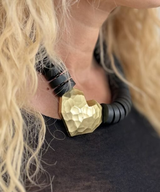 Kaklo papuošalas “Medinukas su širdele”, juoda spalva