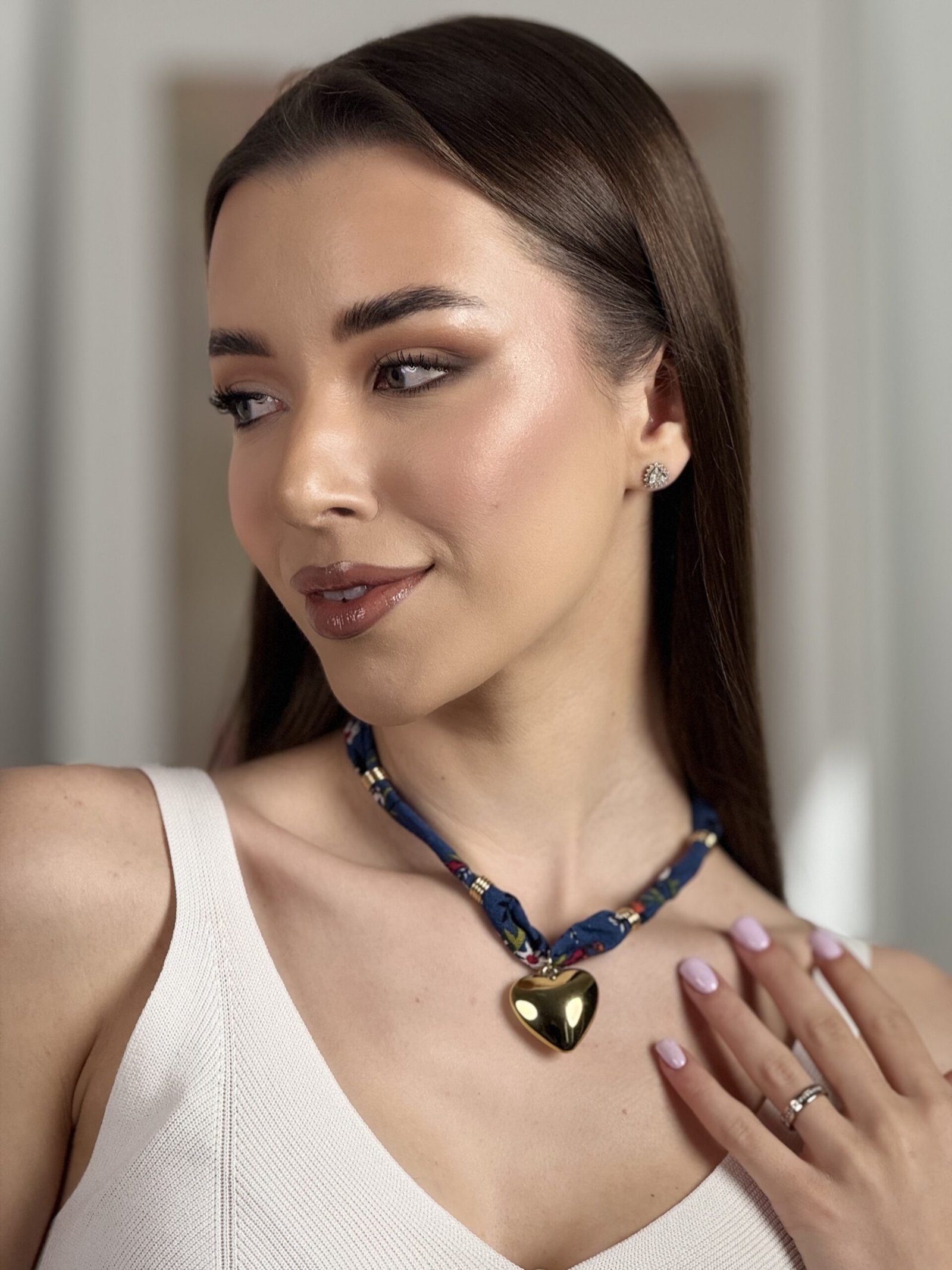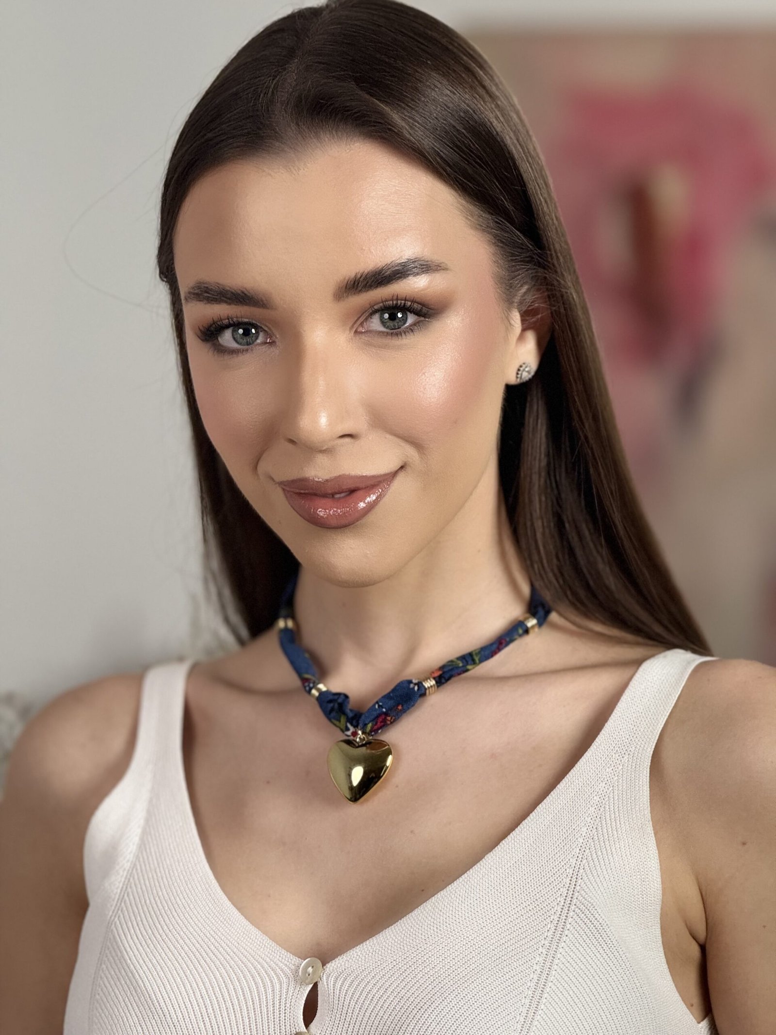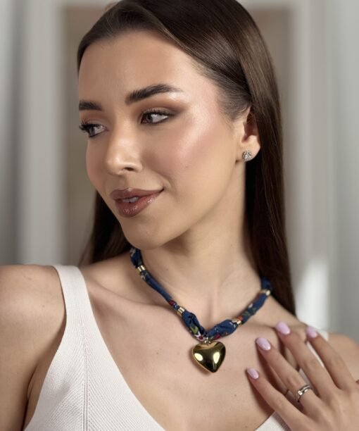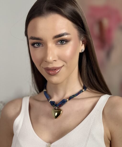 Kaklo papuošalas, „Širdelė su juostele”, t.mėlyna spalva