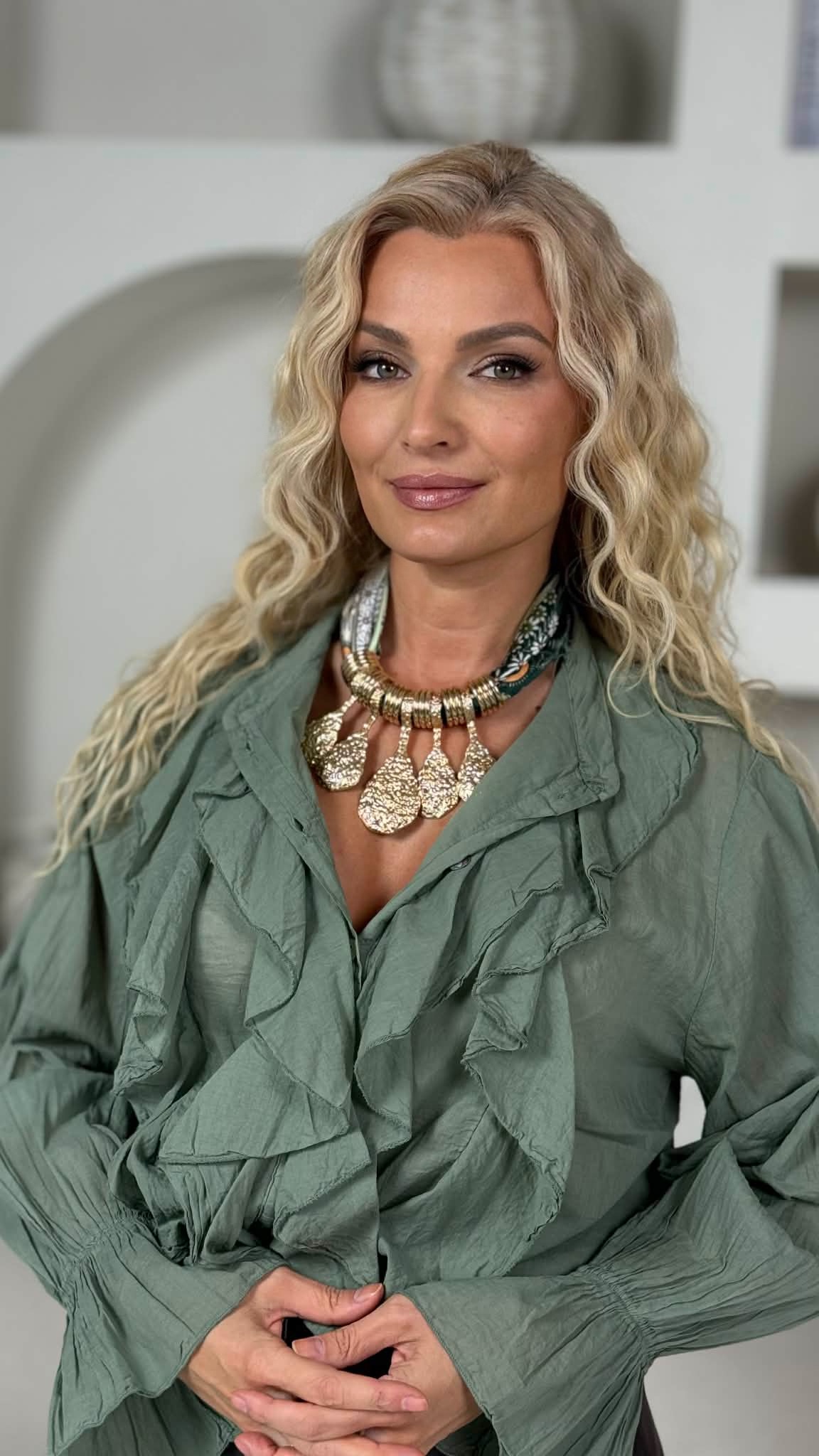 Kaklo papuošalas „Šaukštai”, žalia spalva