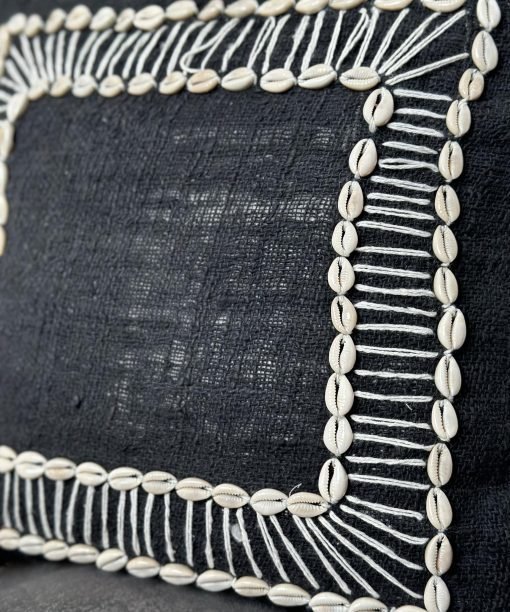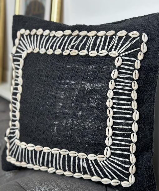 Juodos spalvos rankų darbo pagalvių užvalkalai. Kriauklytės iš Balio salos, kruopštumas ir atidumas, kuris lengvai pastebimas dizaine. Nuostabi interjero detalė, kuri puoš jūsų namus ir pavers visiškai išskirtinais.