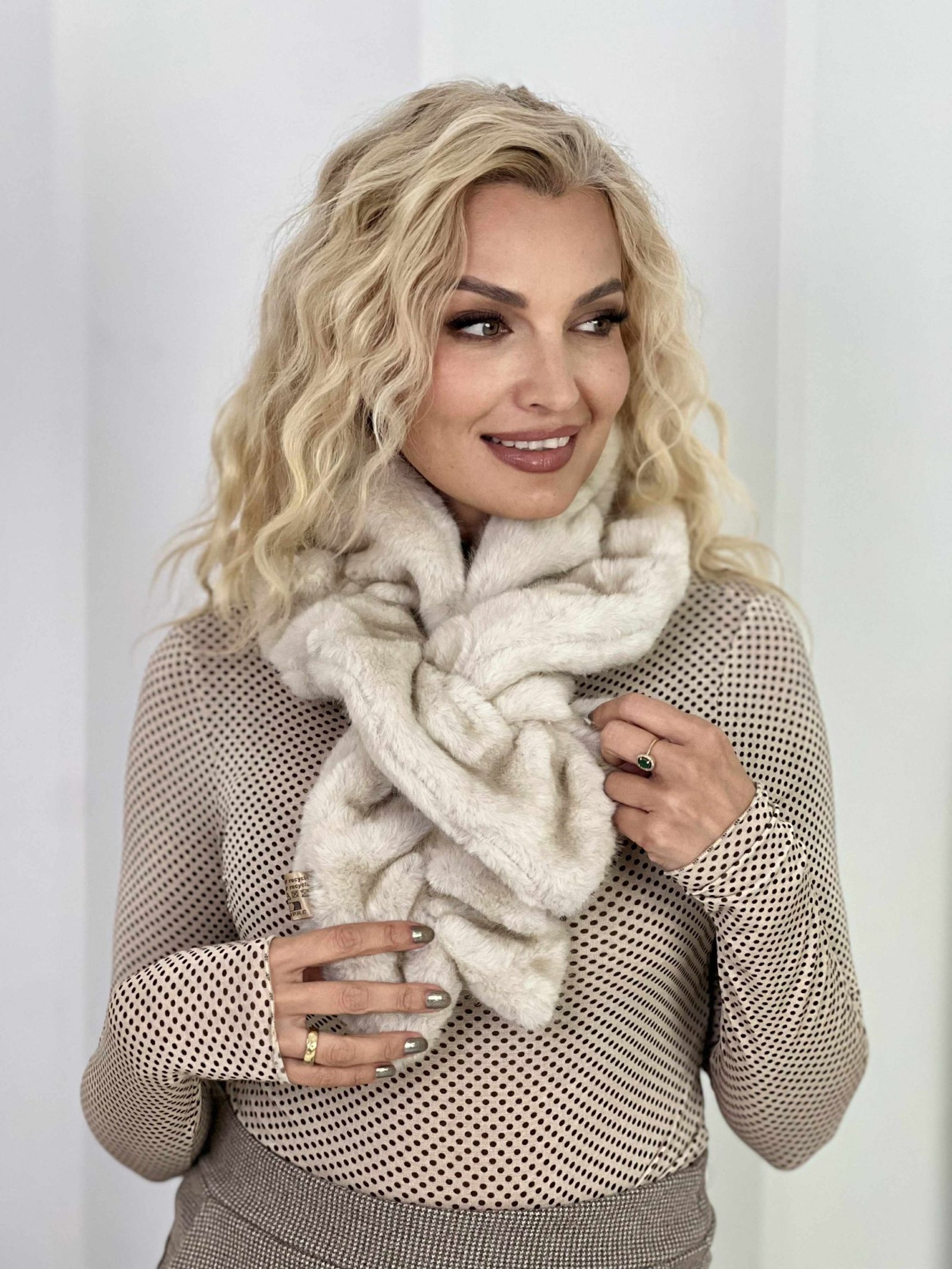Šalikas „Kailiukas-siauresnis”, latte spalva