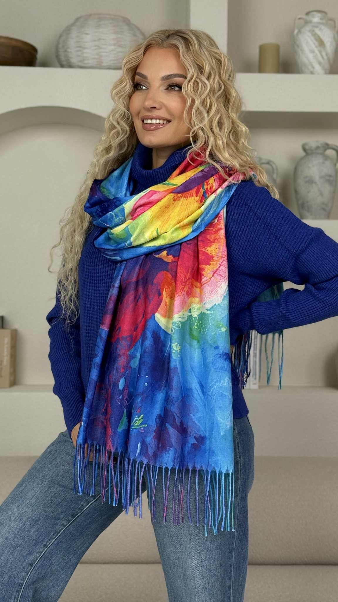 Šalikas „Žibutė” ryški mėlyna/marga spalva