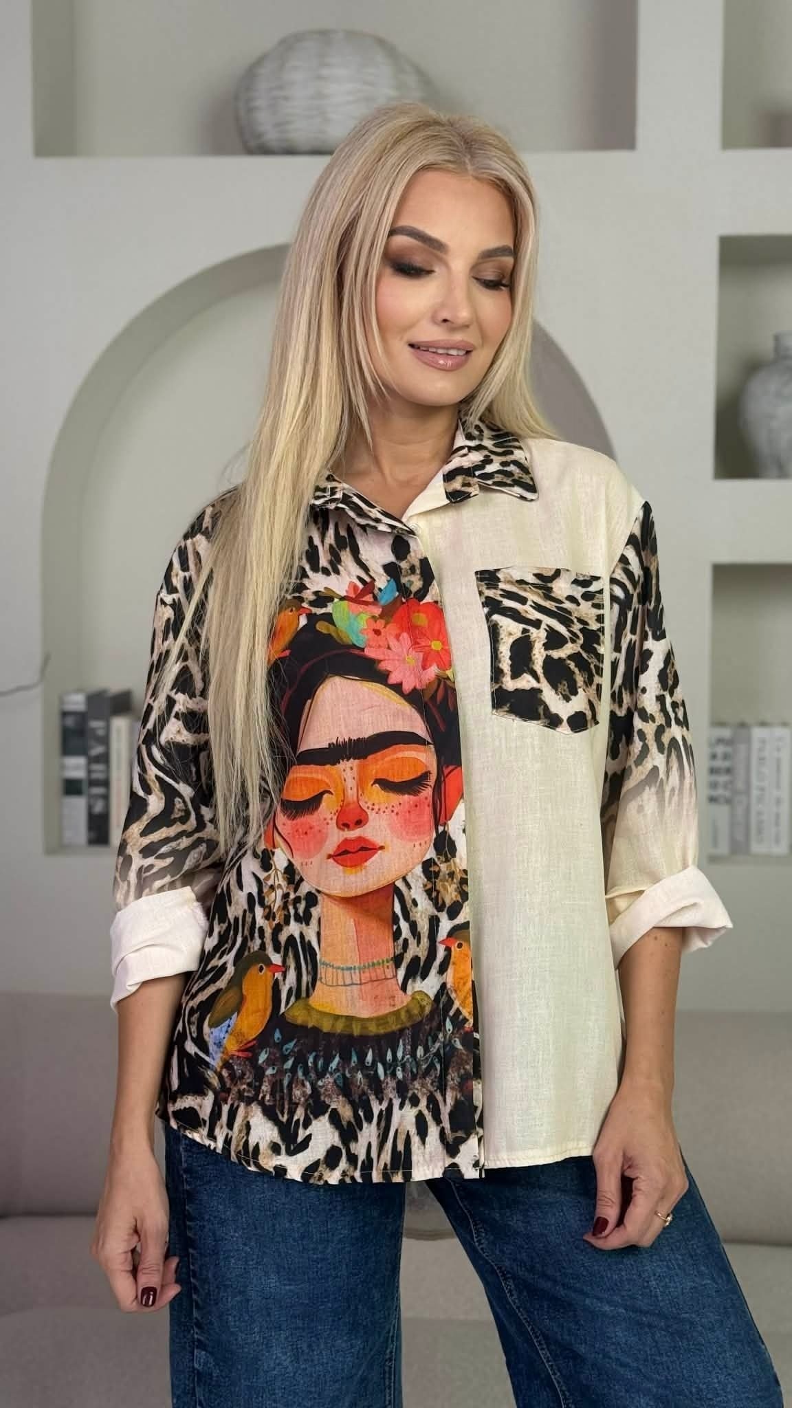 Bohemiškai prabangūs, kūrybiški ir laisvos dvasios marškiniai, puikiai tinkantys savimi pasitikinčiai, stiliaus pojūtį turinčiai moteriai.