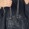 Mėlynos spalvos marškiniai su subtiliais blizgučiais. Laisvas kirpimas ir elegantiškas pasiuvimas, papildytas nėriniais ant nugaros, suteikia švelnumo ir išskirtinumo. Puikus pasirinkimas derinti su džinsais, kuriant šiuolaikišką ir moterišką įvaizdį