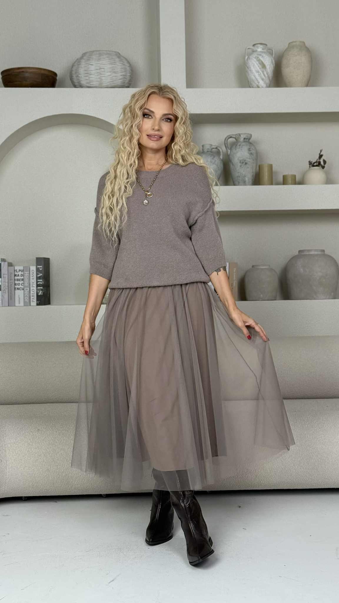 38proc. poliamidas, 32proc. akrilas, 27proc. alpaka, 3proc. elastanas
