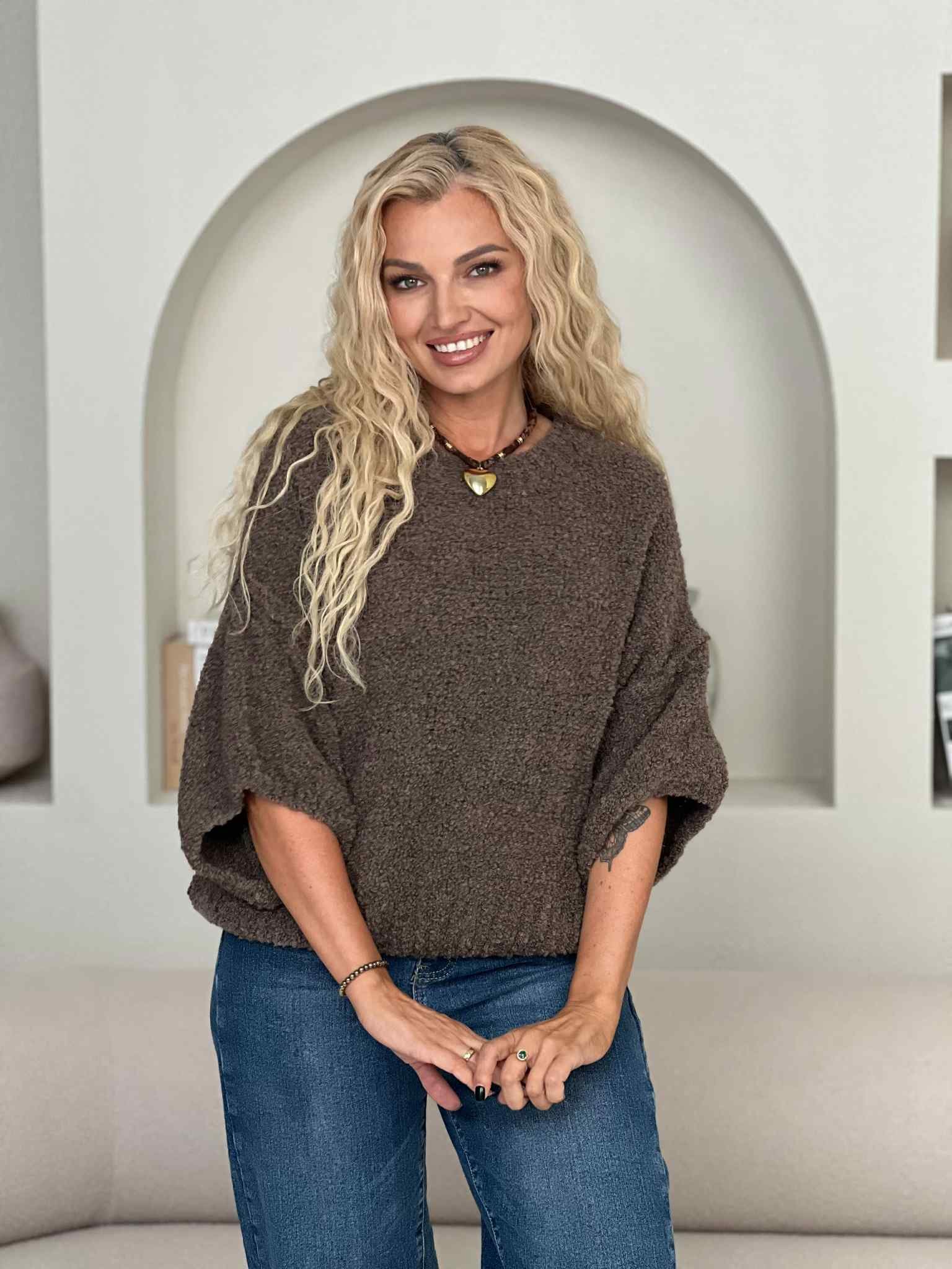 Megztinis 3/4 rankovės "Debesėlis" pilko šokolado spalvos