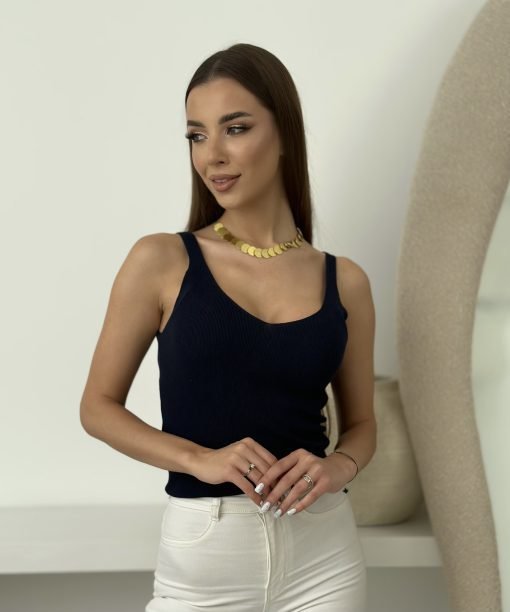 Lengva, megzta palaidinė su išraiškinga V formos iškirpte ir petnešėlėmis – ideali bazė kasdieniam įvaizdžiui.