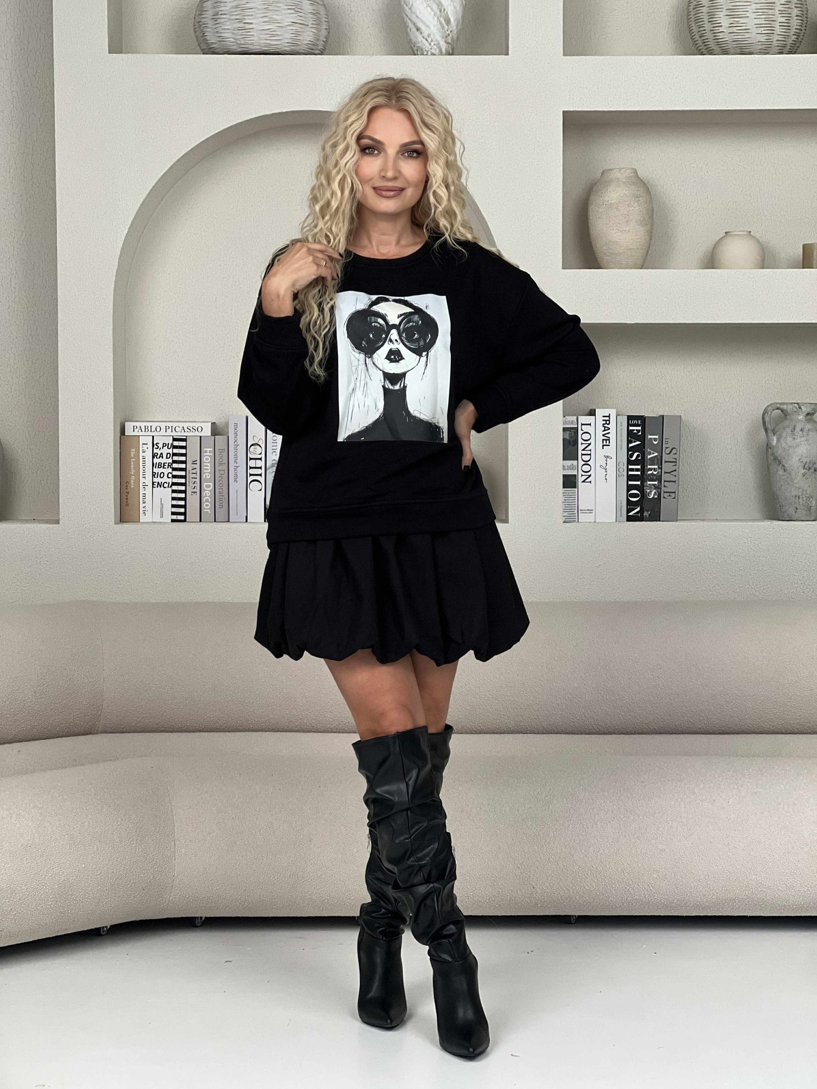 Balloon tipo sijonas – stilingas, pūstos formos sijonas, suteikiantis žaismingumo ir moteriškumo. Lengvai krintanti medžiaga ir apvali silueto forma išryškina liemenį bei sukuria išskirtinį įvaizdį tiek kasdienai, tiek ypatingoms progoms.