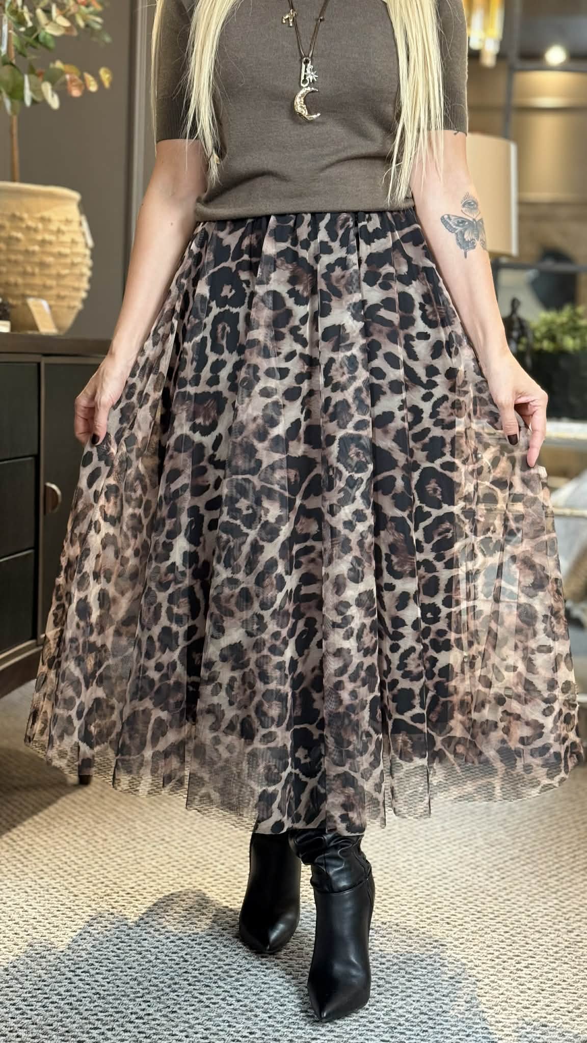 Šis sijonas – tikras moteriškumo akcentas. Puikus pasirinkimas, jei norisi subtiliai išsiskirti ir sužibėti tiek kasdien, tiek ypatingomis progomis. Liemuo su gumele, todėl sijonas puikiai pritaikomas ir komfortiškas. Lengva, plazdanti medžiaga, kuri gražiai ir tolygiai krenta.