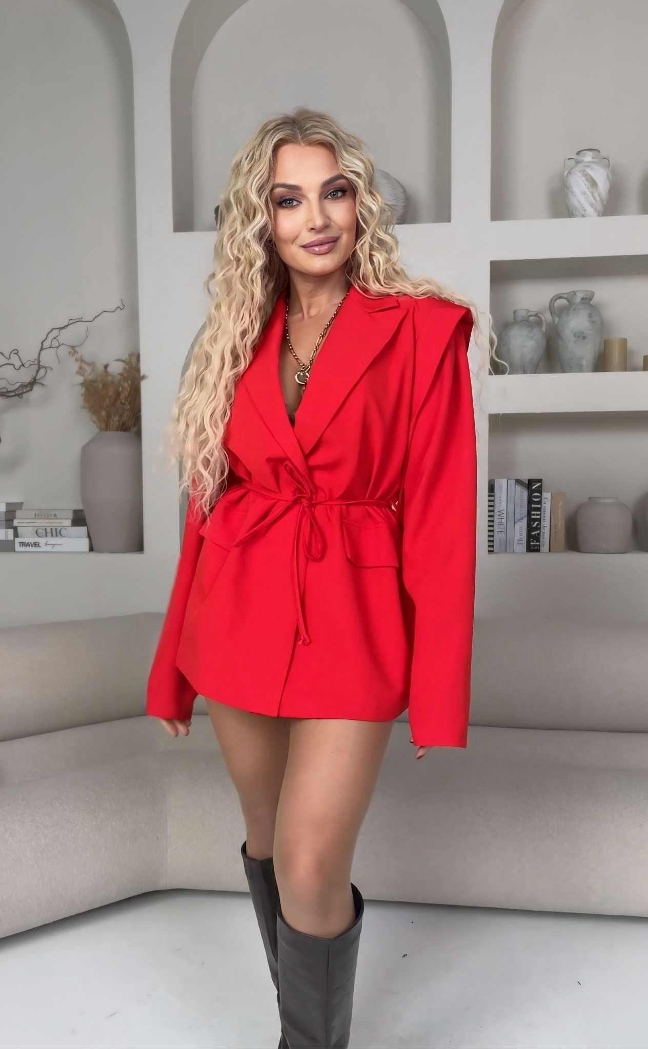 Šis oversize tipo švarkas – stiliaus ir patogumo derinys. Laisvas kirpimas su praplatintais pečiais suteikia madingą siluetą. Tai universalus drabužis, kuris tobulai dera tiek prie džinsų kasdienai, tiek prie sijono ar kelnių išskirtiniam vakariniam įvaizdžiui.